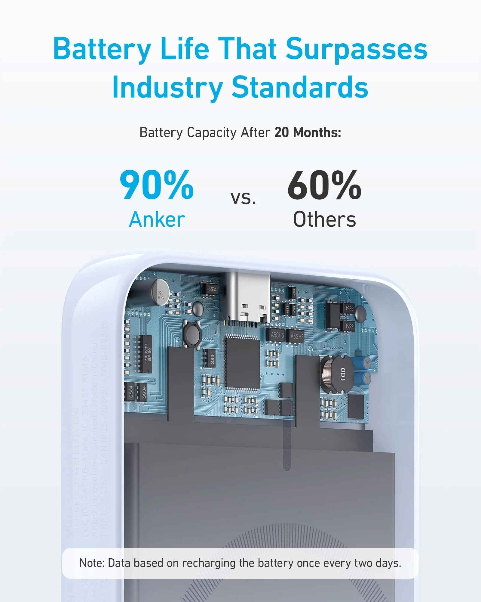 With a huge 5,000mAh capacity, Anker 321 MagGo Battery is a powerful portable charger that is still slim and lightweight—ideal for charging on the go.