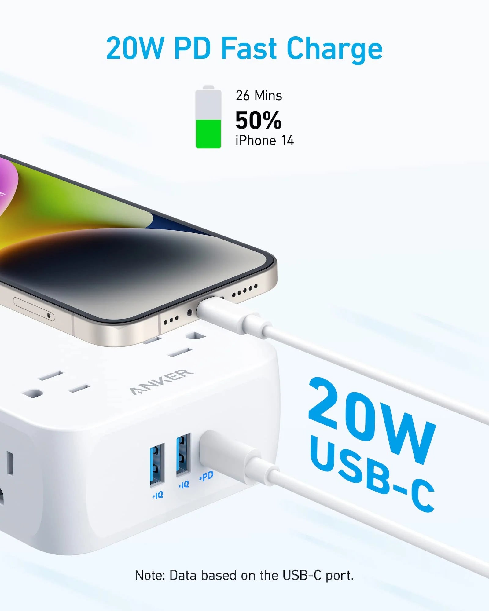 20W USB-C Fast ChargingCharge an iPhone 14 to 50% in just 26 minutes via the Power Delivery USB-C port. |