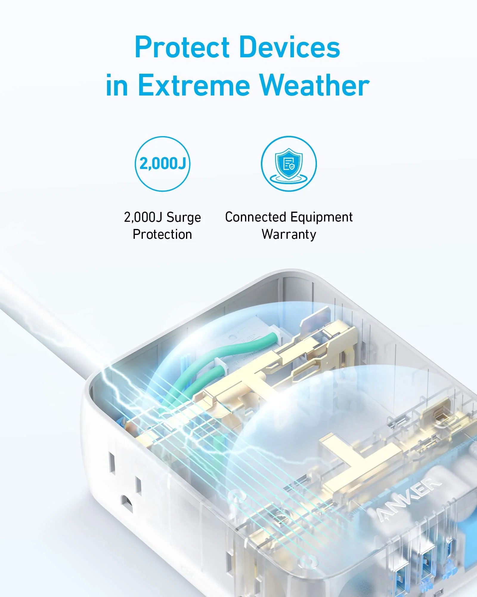 Keeps your connected devices safe from sudden power surges and voltage spikes, even in a storm.