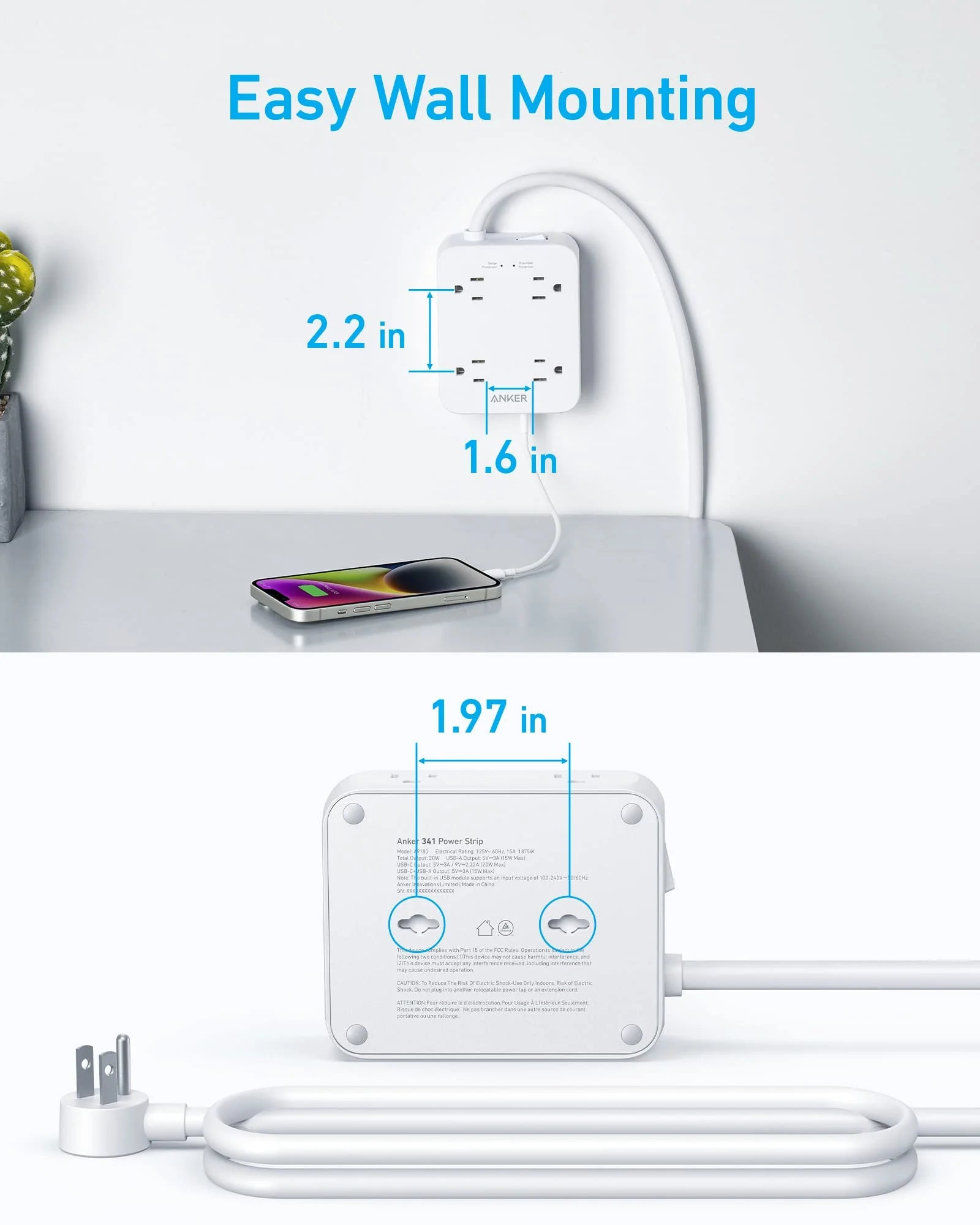 Use the 2 wall-mounting slots on the bottom of the power strip to attach it wherever works best for you.