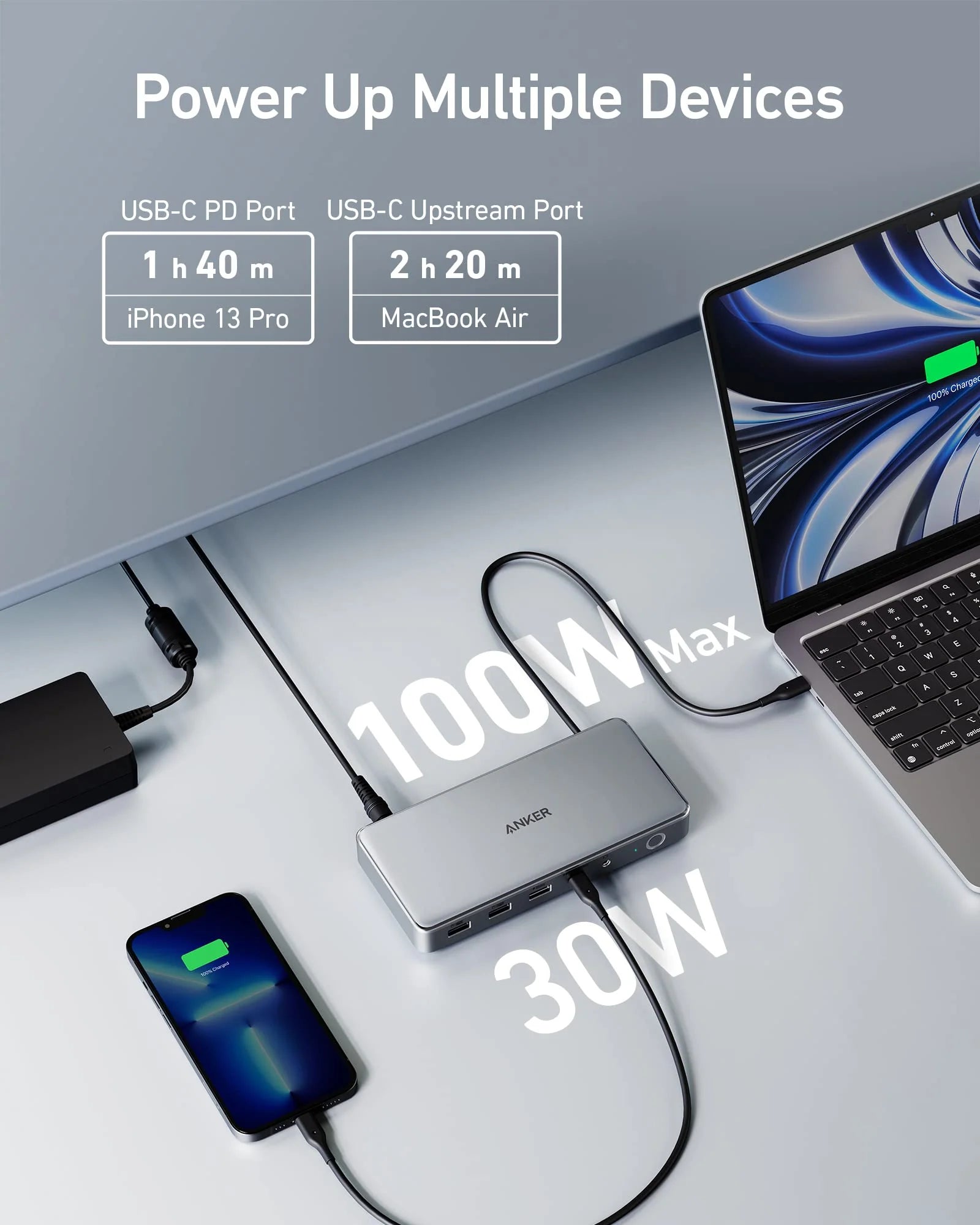Supports up to 100W charging for your connected laptop—that's enough power to fast charge virtually any USB-C laptop including the latest MacBooks. You can even charge your phone at the same time via the 30W USB-C Power Delivery port.