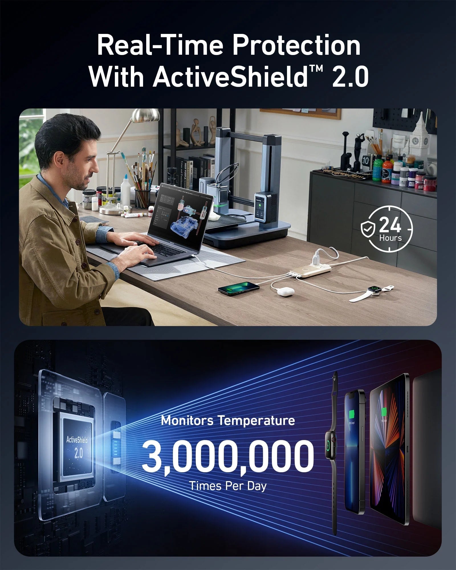 Anker's proprietary technology enhances protection by intelligently monitoring temperature and adjusting power output to safeguard your connected devices.