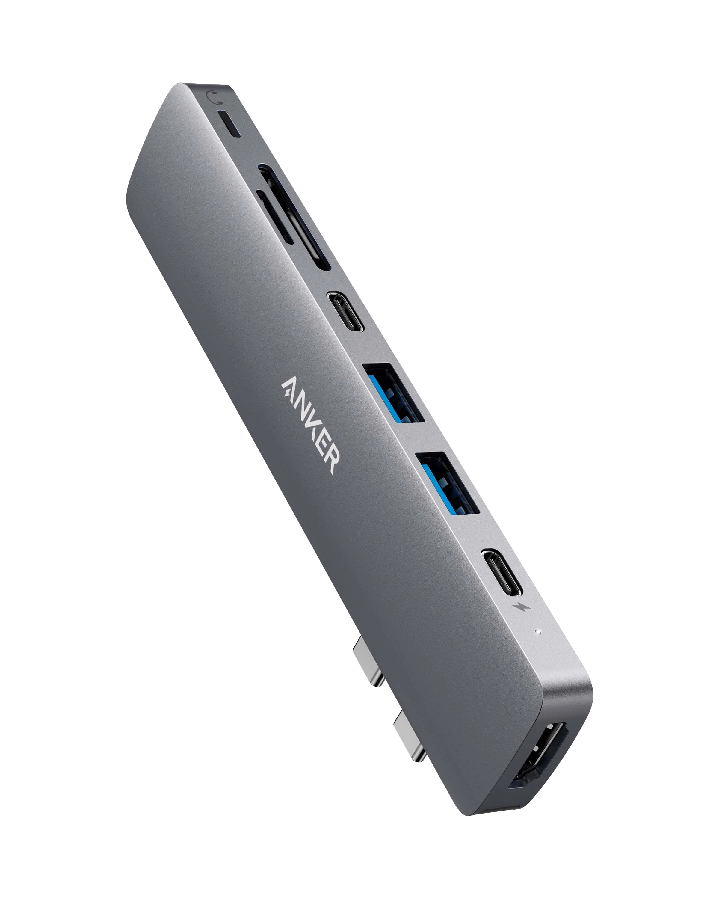 Get 1 multi-function USB-C port, 1 USB-C data port, 2 USB-A ports, 1 HDMI port, 1 SD card slot, 1 microSD card slot, and a Lightning audio port—all from one ultra-compact hub.