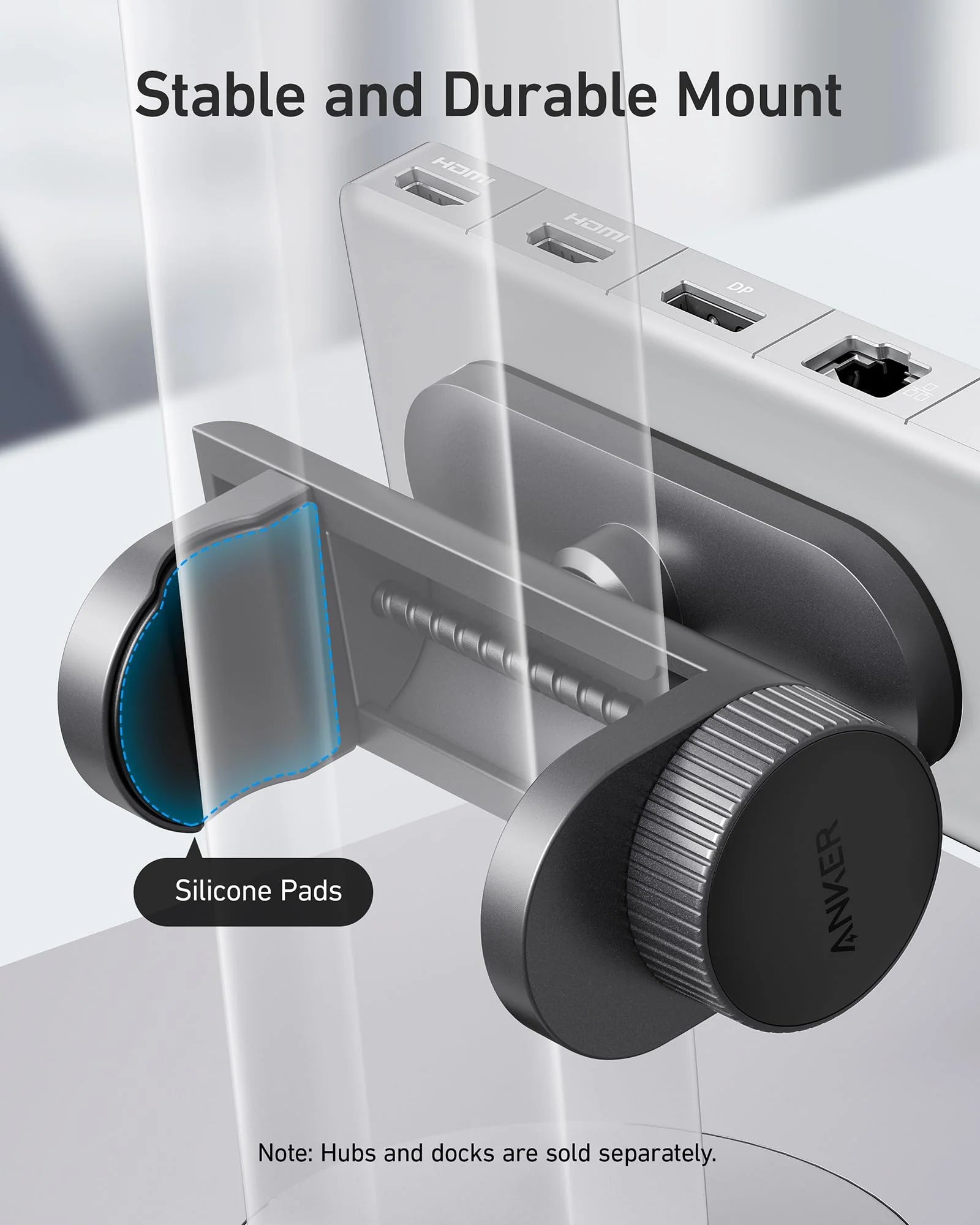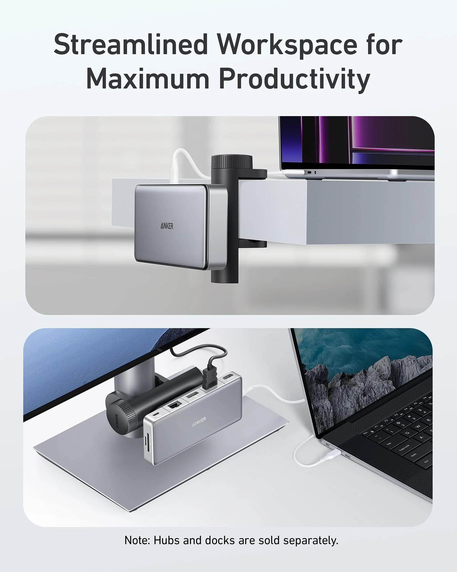 Create a more efficient workspace by mounting your hub or dock onto a monitor bracket or desk edge to reduce cable clutter and maximize desk space.