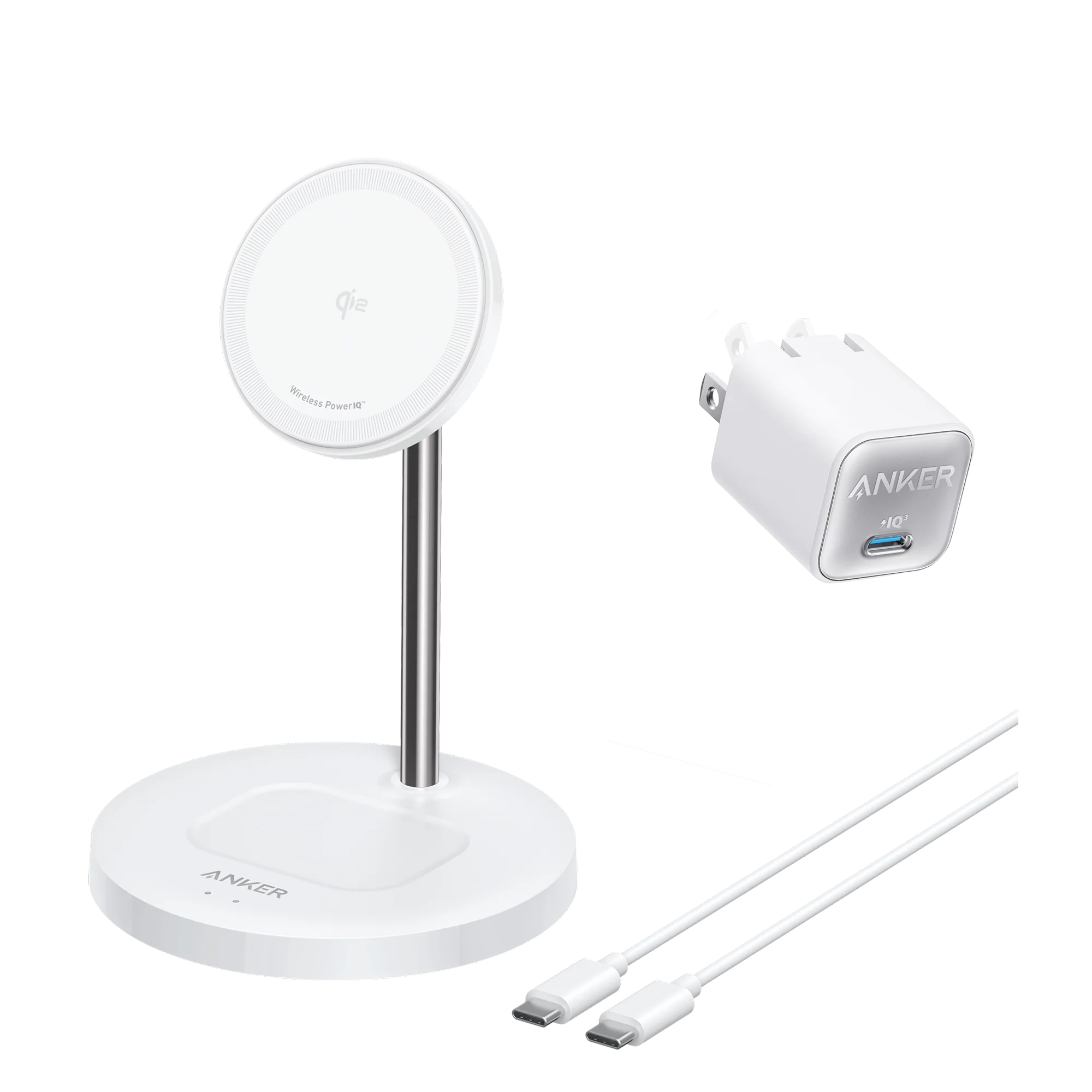 Anker MagGo Wireless Charger (2-in-1 Stand), 5 ft / Anker Nano Charger (30W) / 1.5 m USB-C to USB-C cable, welcome guide, 24-month warranty, and our friendly customer service.